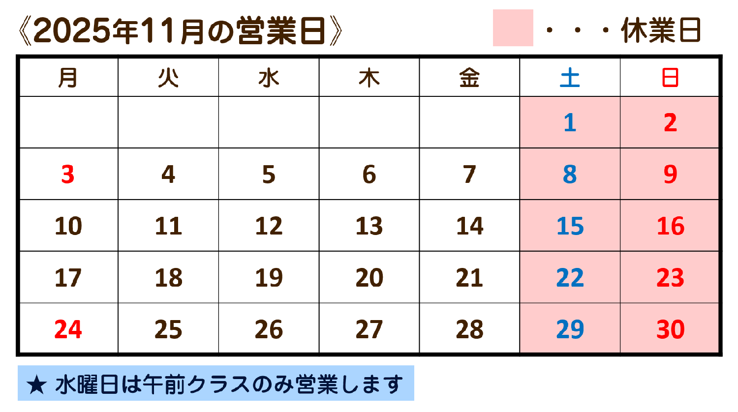 メディトレあした2025年11月の営業日カレンダー