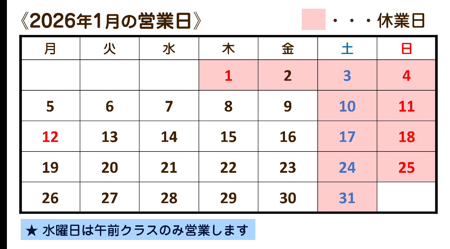 メディトレあした2026年1月の営業日カレンダー